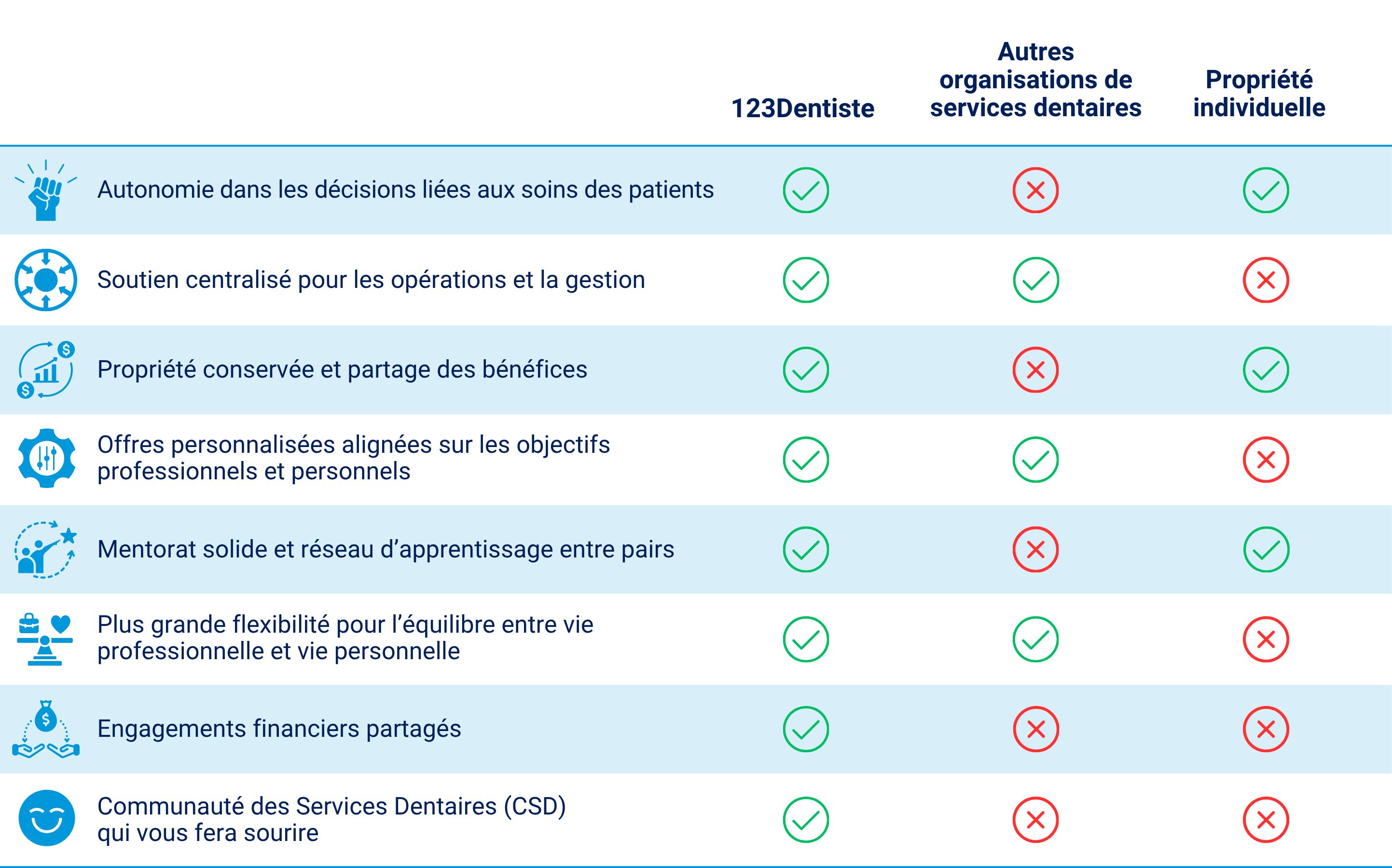 Nous plaçons les personnes au centre de toutes nos décisions. Pour ce faire, nous abordons nos partenariats comme des relations à long terme : nous investissons dans vos capacités, en tant que propriétaire d’un cabinet dentaire, et nous voulons vous aider à faire passer votre entreprise au niveau supérieur, sans rien enlever de ce que vous avez construit. Nous pensons que les relations sont primordiales, c’est pourquoi nous travaillons avec acharnement pour établir et maintenir la confiance, et le taux de satisfaction de nos dentistes partenaires le prouve.